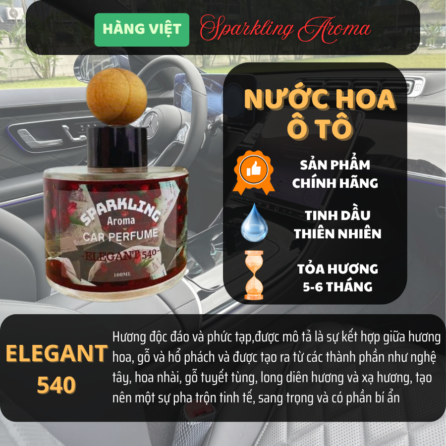 - Tên sản phẩm: Nước Hoa Ô Tô Cao Cấp Hương Elegant 540