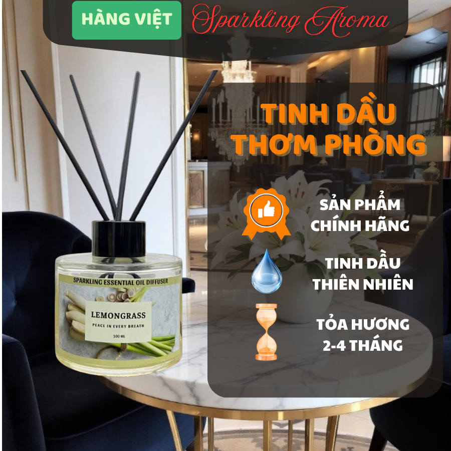 Tinh Dầu Thơm Phòng Khuếch Tán Cắm Que Sparkling Aroma Hương Sả Cao Cấp